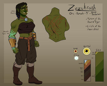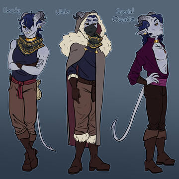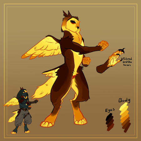 Includes a full front view, color palette, name, age/species/gender and any extra text.Humanoids will get a simple outfit as well.